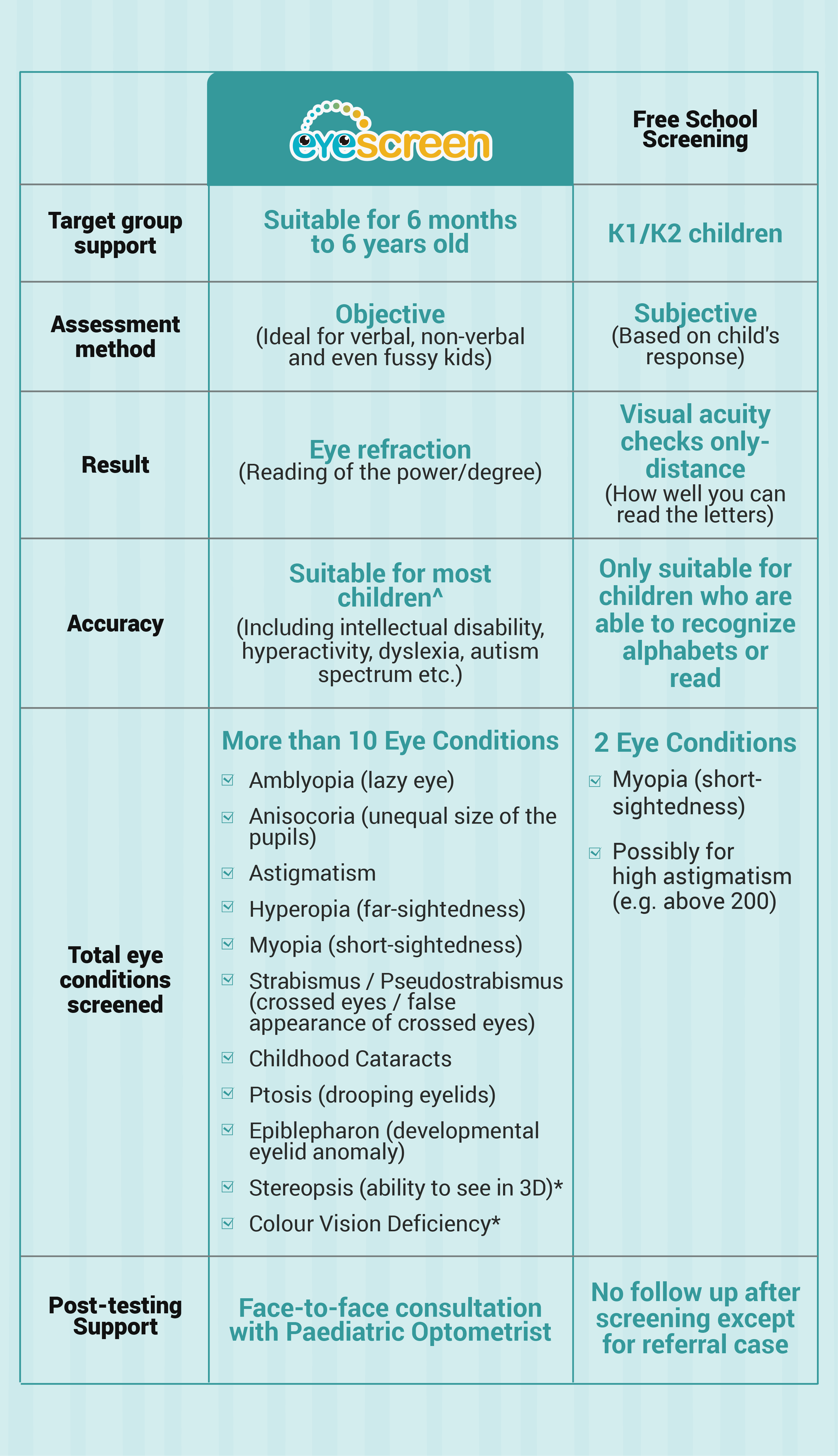Eyescreen vs Free School Screening